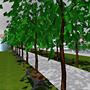 cortina d'alberi: lo spazio interno è attualmente adibito a parcheggio; l'anello