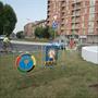 02/08/2016 Ciclabile con pali in via Pavia Nuova versione delle piste ciclabili finanziate con il PISU. In mezzo ad una carreggiata pali per illuminazione. Interpellanza di Fabbio