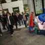 strade del centro città sono state teatro della perfomance dell’artista di fama