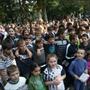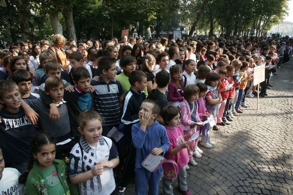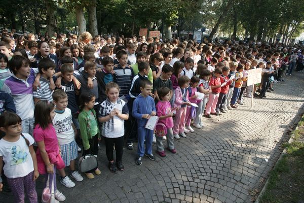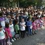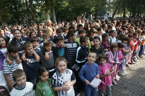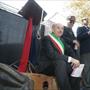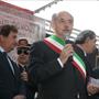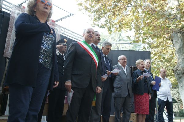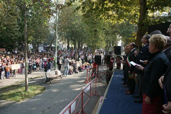 In viale della Repubblica Stefano Venneri guida il coro di quasi 2000 studenti. Eseguito l'Inno in versione completa.