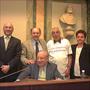 Una parte del Gruppo Consiliare di Forza Italia al Comune di Alessandria (da sinistra: Fabrizio Priano, Piercarlo Fabbio, Fedele Micò, Teresa Curino; seduto Gian Paolo Olivieri), mentre sostiene la protesta del collega Fedele Micò contro la Presidenza del