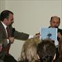 mostra al pubblico la foto del galletto che consegnerà a Nicola Sirchia