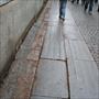 appaiono evidenti i danni subiti in alcune parti dalla pavimentazione e dai